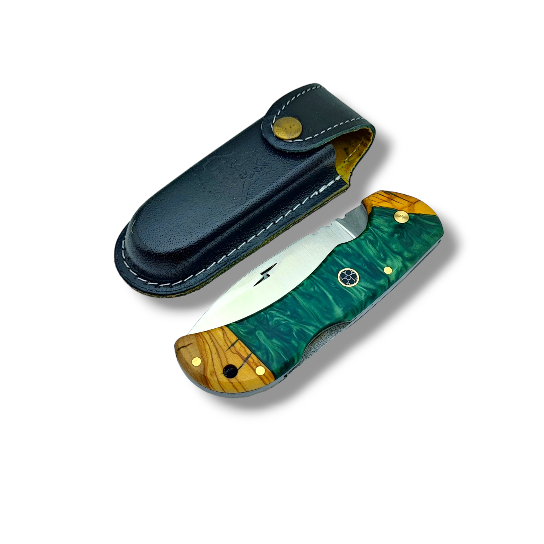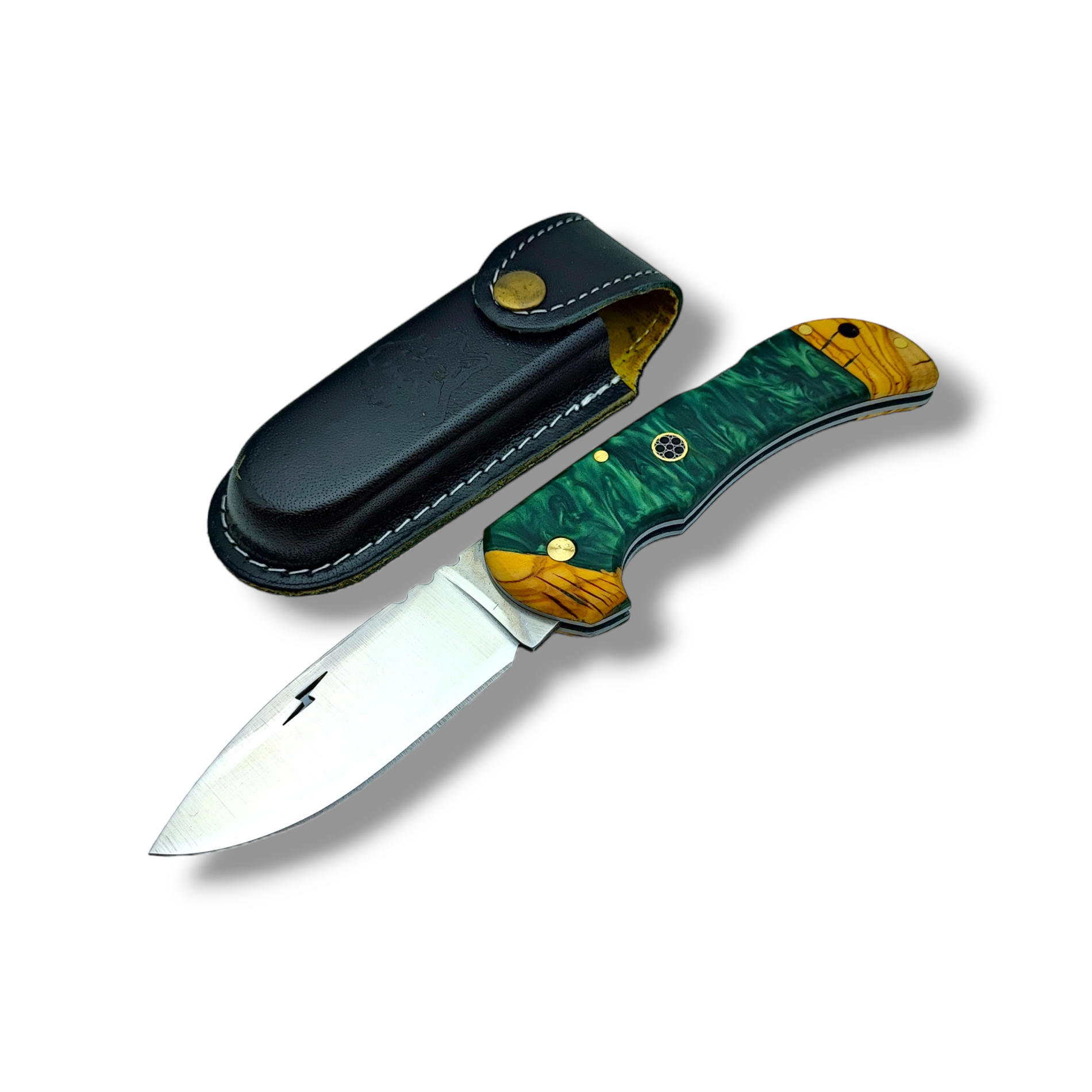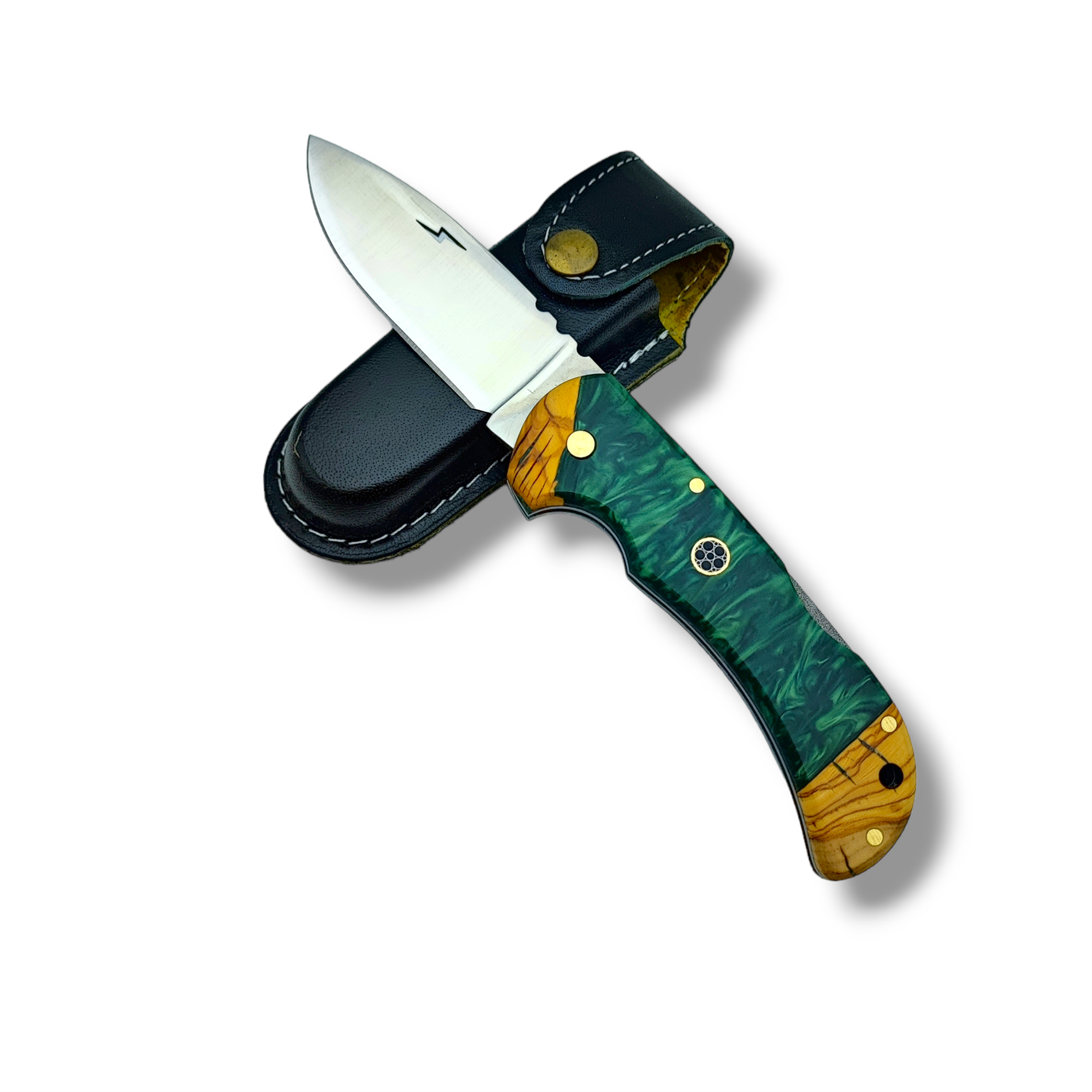 El Yapımı Epoksi Kabze Sırttan Kilitli Bushcraft Kamp Çakısı Stabsman ( Yeşil )